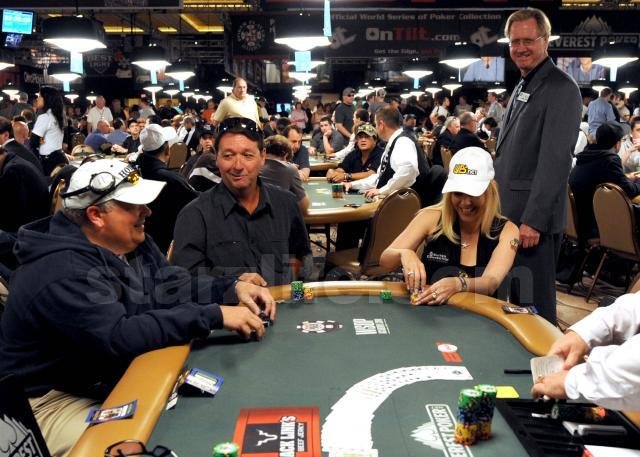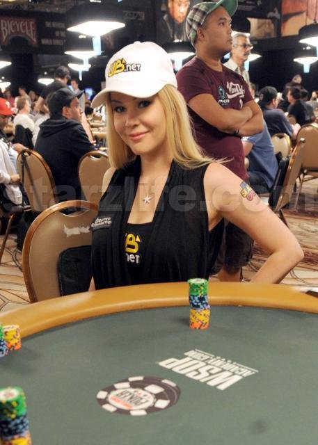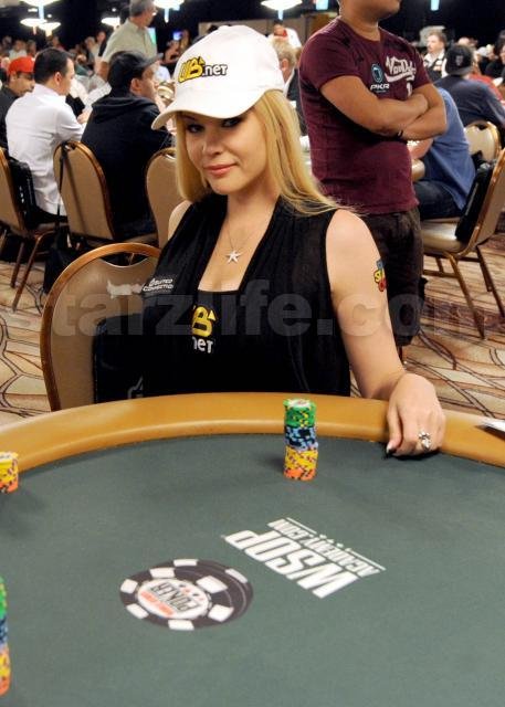 Decked out in her threads from Ultimate Bet, Shanna’s poker face definitely provided a distraction to those at her table.