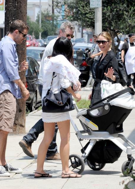 Though they must have newborn baby on the brain, because as a passer by with a stroller walked their way, they stopped to admire the young tot.
