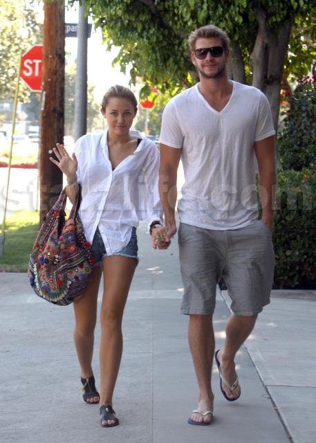 We spotted Miley Cyrus doing what her and her boyfriend, Liam Hemsworth do best. Lunching!