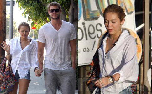 Miley and Liam spent the day strolling around the Valley and grabbing some sushi for lunch.