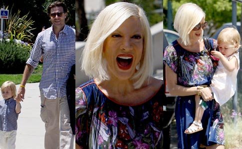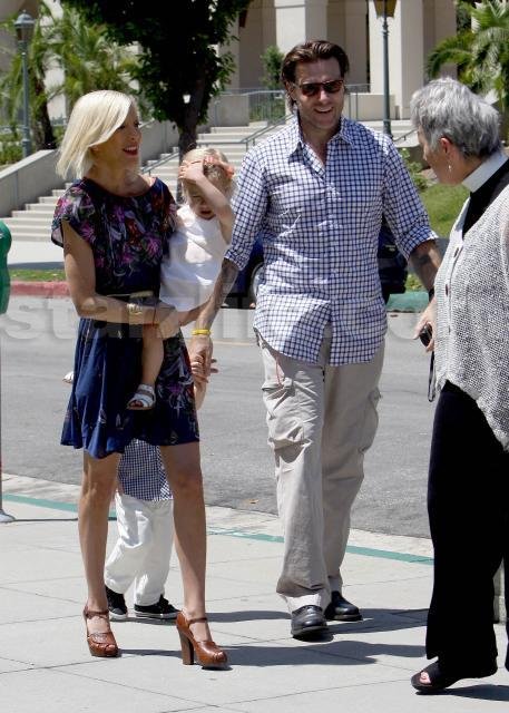 We spotted Tori Spelling, Dean, and the kids Liam and Stella heading to a church in Pasadena on Thursday afternoon, looking like one big happy family.