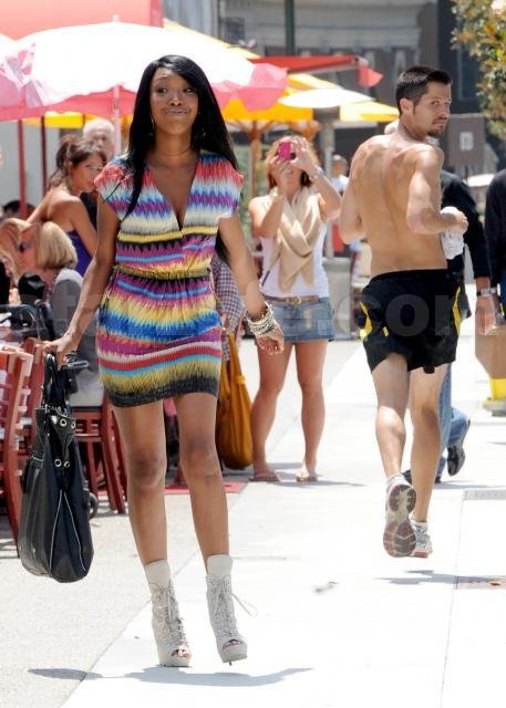 We spotted Brandy out and about at Sunset Plaza Tuesday decked out in a dress almost as electric as her smile!