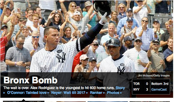 In what might be the most unseen historic moment of sports EVER, Alex Rodriguez hit his 600th career home run today, in the third inning of an afternoon game at the new Yankee stadium.