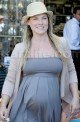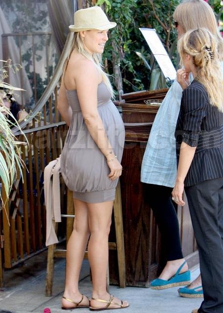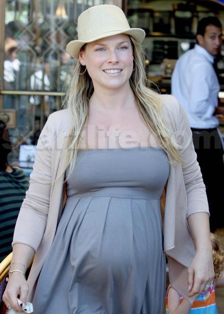 Although generally a rule most pregnant woman should not wear tubetops, if anyone can pull it off it’s Ali Later. The very pregnant actress shed her sweater to go strapless while waiting to lunch with friends at the Little Door in West Hollywood.