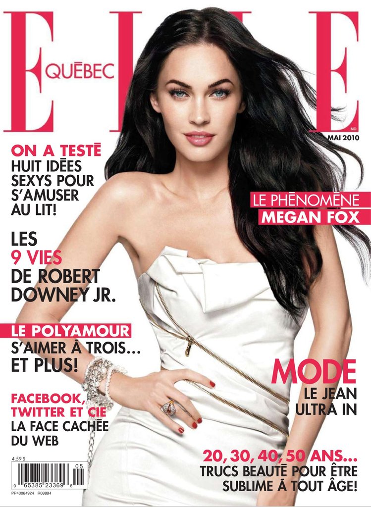 Either Elle drugged Megan Fox to get her on the cover of their new issue or they denied her coffee on the shoot, because she’s got two ton eyelids. Still, there she is in all her monochromatic glory for the second time on the cover of American Elle. Inside the magazine the 24 year-old-actress talks about her new life as a married woman claiming that people “can’t grasp that I’m old enough to be married.” I don’t think that’s the case so much as they find it a little weird/creepy you married the man that started dating you the second you became legal.