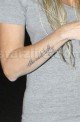 A very down-in-the-dumps looking Laticia showed off her forearm tattoo which reads “she want’s to fly”.