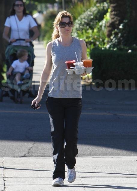 Katherine Heigl rarely leaves the house without being fully dressed and completely presentable, where as Ellen Pompeo could really stand to run a brush through her hair before she hits the streets of Los Angeles.