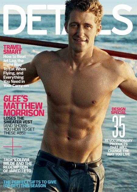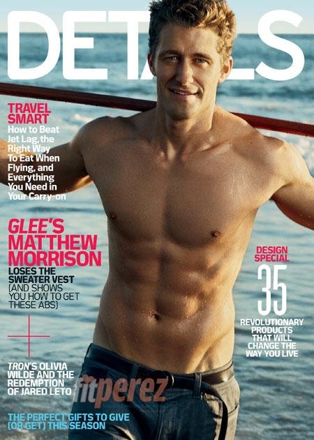 Glee’s Matthew Morrison has gone shirtless for the new issue of Details Magazine.