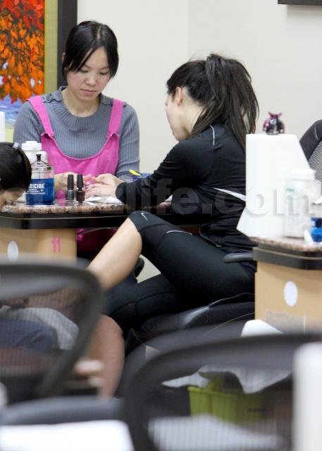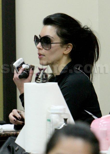 Well we spotted Kim Kardashian out and about today chatting up a storm on her cell phone and texting during a pedicure!