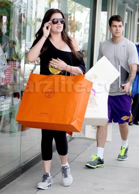 We spotted Khloe and Rob Kardashian, decked out in Lakers gear doing some Christmas shopping yesterday afternoon.