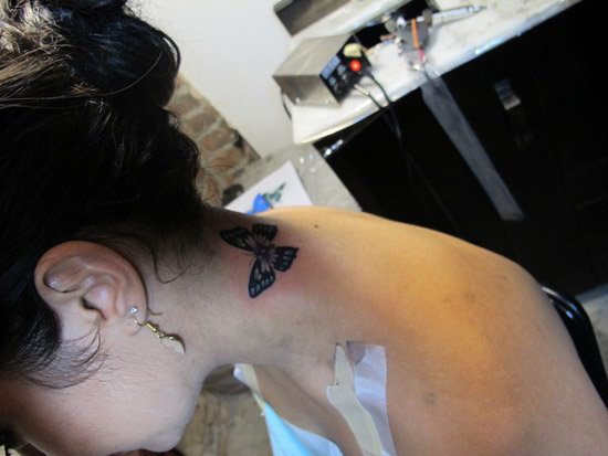 Vanessa must have chosen the neck, because the image of a butterfly tat on the back of her neck then appeared in one of the following tweets.