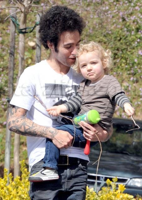 Wentz and Bronx hit up the park where they played with sticks, and modeled matching afros on the sunny Southern California day.