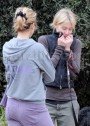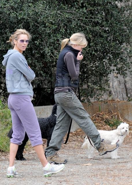 We spotted Mrs. DeGeneres and her pups out for a stroll just as she we headed back home, saying goodbye and sharing a quick embrace with her pal before parting ways.