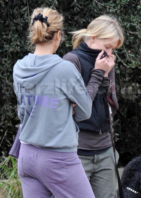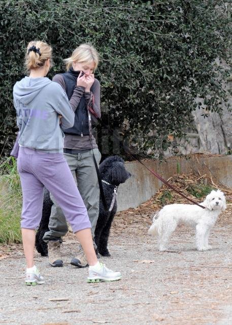 Portia Di Rossi was playing a little game of hide and seek with us when we spotted her and a friend walking dogs in Beverly Hills.