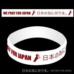 The bracelets read ‘we pray for Japan’ in both English and Japanese and feature the Gaga signature claw, and will cost you five dollars.