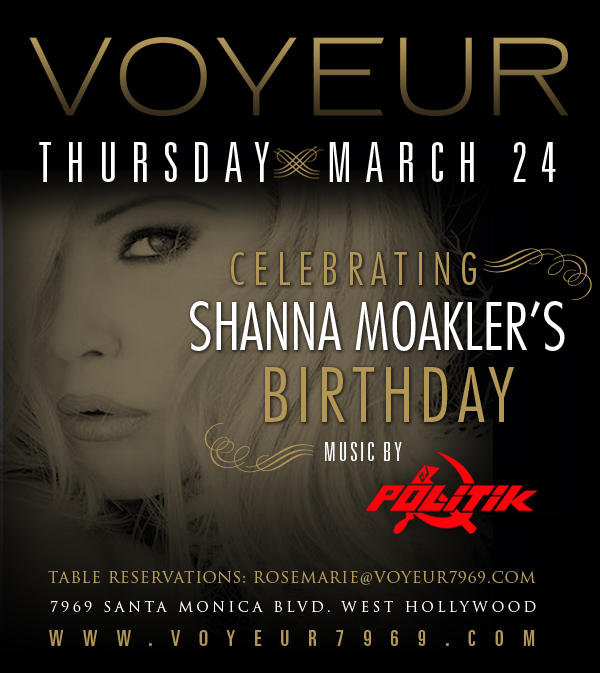 Shanna’s party is going down at Voyeur nightclub, it’s going to be a night to remember with the coolest celebrity in Hollywood and her guests.