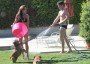 Janice and David spent some time together playing in the LA sun and spraying each other with the hose.