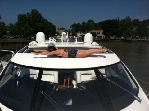 Planking on a big boat, Perry wrote the caption: “Planking on the 4th.”