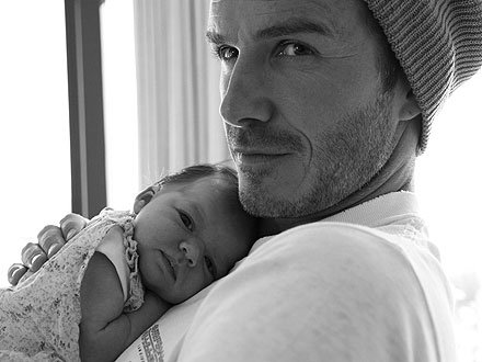 Victoria wrote: “I took this beautiful picture and wanted to share it with you, baby Harper cuddling Daddy! x VB.”
