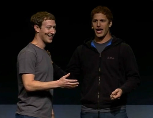 Andy Samberg went full on “berg” at the Facebook F8 conference yesterday, kicking off the show reprising his role of Mark Zuckerberg from SNL.