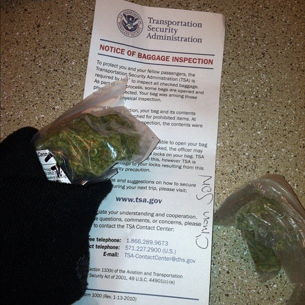 It takes some big cajones to travel with that much Marijuana, but one isn’t required to pass an IQ test to fly in the friendly skies.