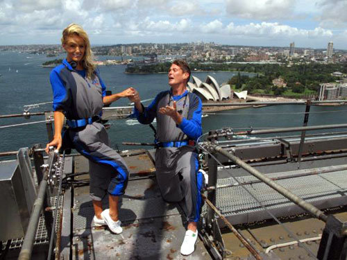 Hoff posted this photo to his Twitter page on Monday saying, “Tried it again on top of the Sydney Harbour Bridge!”adding, “What do you think she said!?!?!”