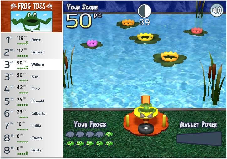 Frank, is also a competitive game where users have to use a mallet to launch frogs onto