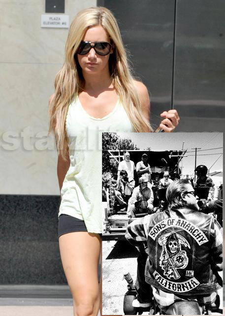 Tiz posted the inset photo to her Twitter.com page with the caption; “My view today… #sonsofanarchy #charliehunnam http://t.co/tGVinuYF”.”