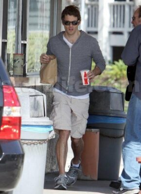 Sheesh, look at the calves on James Marsden! Does he work out by jumping over minivans, or has the elevator to his penthouse been broken for two years? The X-Man bought tacos at Henry’s Tacos in North Hollywood recently. Starzlife was there. Because those are some goood tacos.