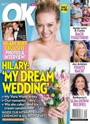 Hilary Duff’s wedding photos are the feature in the newest Ok! Magazine, and the girl looks amazing! Hilary wore a Vera Wang dress to the ceremony that was held in Santa Barbara for about 100 guests. Check out more pictures in the new issue of Ok!