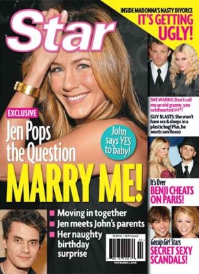 Star Magazine is reporting that Jen Aniston has asked John Mayer to marry her. The pair have only reportedly been back on for a couple of weeks, and apparently trying to keep up with the speed of her biological clock if the rumors are true. It does seem that every time Angelina Jolie gets in […]