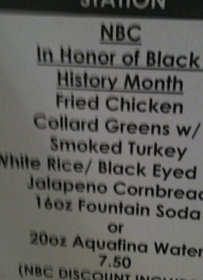 I love this. Remember the controversy yesterday about NBC serving a delicious and appropriate meal of fried chicken and collard greens to celebrate Black History Month BECAUSE BLACK PEOPLE LIKE FRIED CHICKEN – YOU WILL NOT SILENCE ME ON THIS ISSUE and how people predictably called for a march on Washington or whatever? Well, they […]