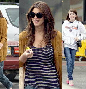 We spotted Ashley Greene and a friend doing a little grocery shopping in The Valley this week. We spotted her Twilight co-star Kellan Lutz leaving a near by gym as well, and by the looks of her legs in those short shorts, her recent trips to the gym have been paying off as well.