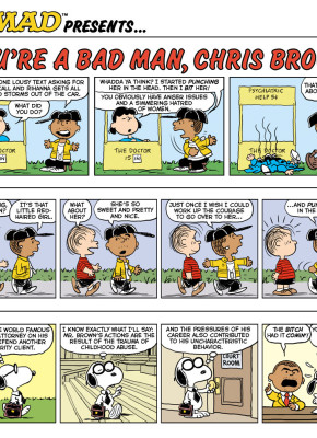 LOL at this MAD Magazine comic featuring Charlie Chris Brown. It might still be too soon for the jokes, but dare we say that after Rihanna has let this monster back into her life, it’s open season?