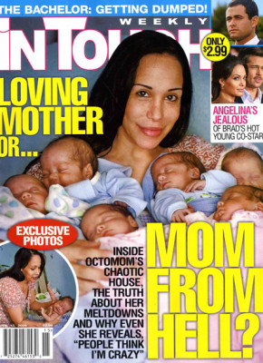 Not a big fan of the octo mom story, and like she suggests on the above cover, I do believe she may be crazy, but this cover was too good to pass up. Mom from Hell? Yes!!! Someone take those babies away!!