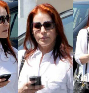 We spotted a true beauty, Priscilla Pressley, out and about today making a quick escape from a shopping trip and hopping into her new Fararri. Priscilla looks like she’s had some more work done lately. Yikes! Check out a few more photos below.