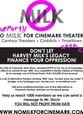 Harvey Milk’s courage to become the first elected openly gay politician in America changed lives, and now your courage can help as well. WWW.NOMILKFORCINEMARK.COM has started a campaign to boycott going to see the new Sean Penn film, Milk at any theater owned and operated by the Cinemark corporation. As noted in the flier above, […]