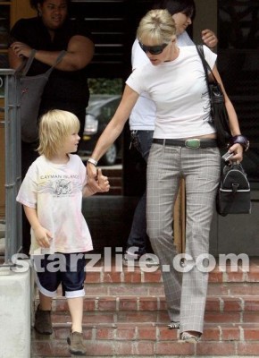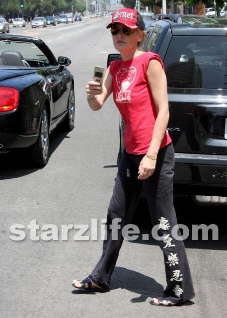 WIld Cougar Sharon Stone-age picked up her oldest adopted son, Roan yesterday from some sort of a summer program. Check out the StarzLife EXCLUSIVE!! photos after this.